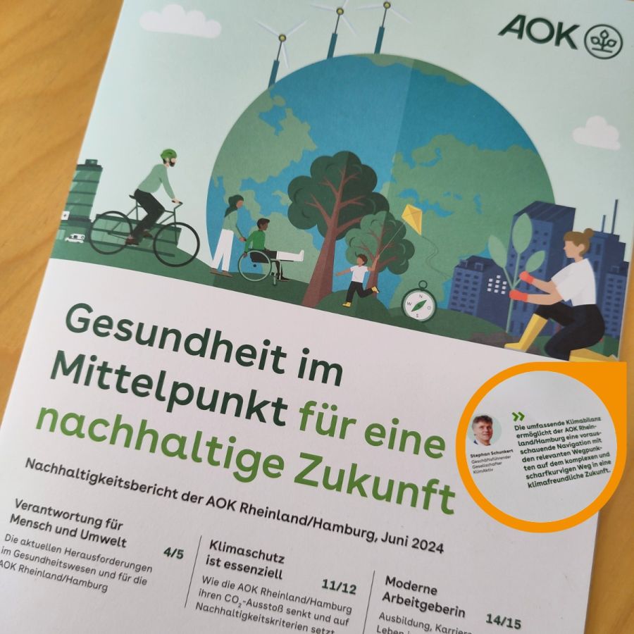 Die AOK Rheinland/Hamburg veröffentlichte im Juni 2024 ihren zweiten Nachhaltigkeitsbericht - mit einem Statement von KlimAktiv zur Bilanz