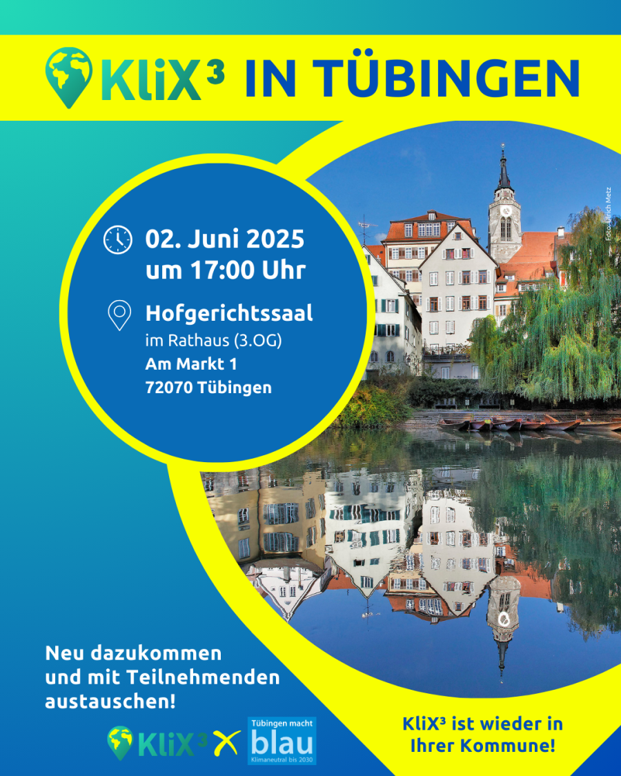 Am 2. Juni 2025 findet die zweite Auftaktveranstaltung KliX³ - Wege zum klimaneutralen Leben in Tübingen statt....