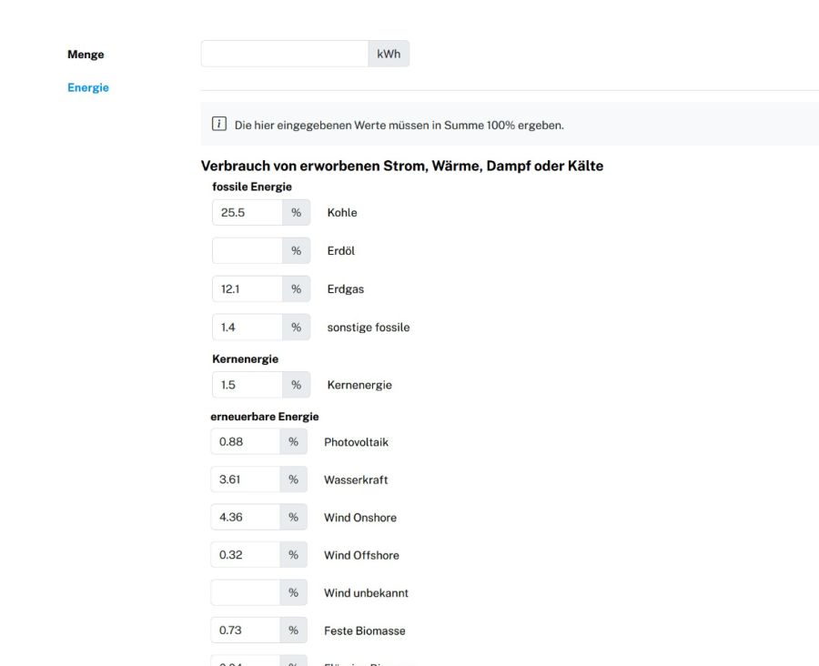 Überschreibung der Energiemixe bei Strombezug jetzt möglich
