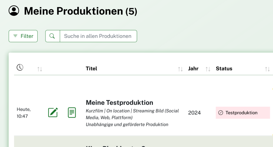 Die drei Listen „Meine Produktionen“, „Mitarbeit an Produktionen“ und „Zugeordnete Produktionen“ sind nun jeweils auf einer eigenen Seite untergebracht und können außerdem nach Produktionsart gefiltert werden (z.B. nach Auftrags- und Eigenproduktionen). Vor allem für Sender oder Unternehmen mit vielen zugeordneten Produktionen erhöht das die Übersichtlichkeit enorm und verkürzt gleichzeitig die Ladezeiten.